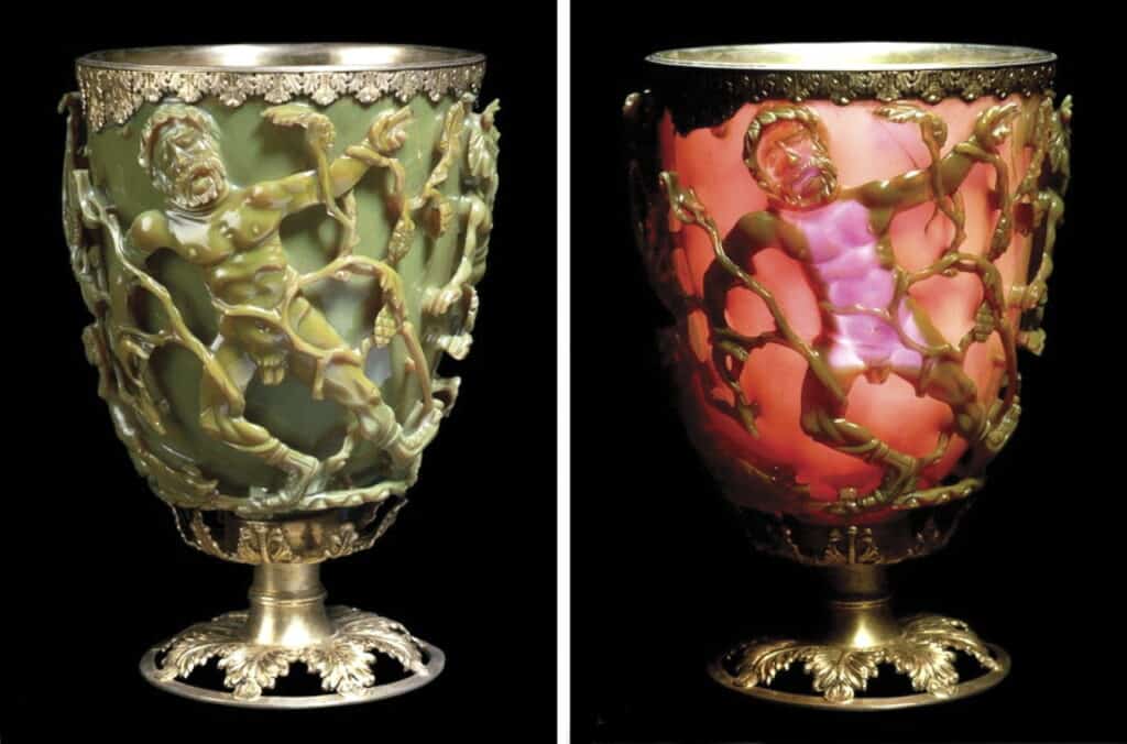 Romans loved making things fun as well as useful. The amazing thing is that the colour changing effect only works when the particles of gold and silver are super tiny. The picture above is the famous Lycurgus Cup in the British Museum – just look at the effect produced by the light!
