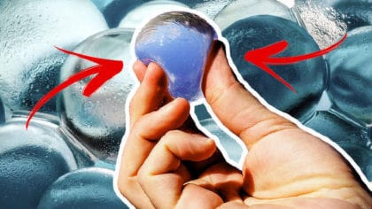 To create the balls, a block of ice is dipped in a special solution and the membrane forms around it. The ice then melts, leaving water inside.