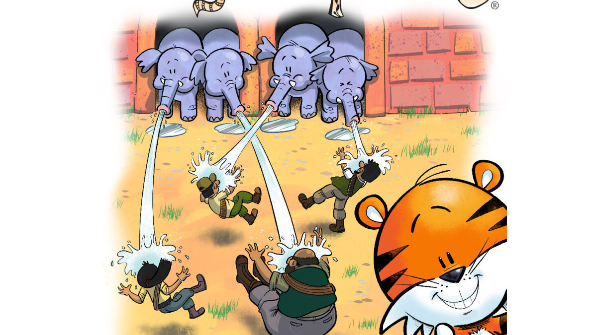 The tigers have chosen the Old Fort as the setting for the final confrontation with the poachers. Once again, they’ve called in some favours from the park’s other animals, including some langur monkeys and a troupe of elephants. So…can they finally see off the poacher’s evil threat?